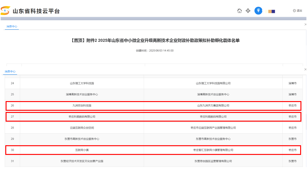 近日,山东省科技厅根据《山东省中小微企业升级高新技术企业财政补助资金管理办法》(鲁科字〔2021〕48号)等有关政策规定,公示2025年山东省中小微企业升级高新技术企业财政补助政策拟补助孵化载体名单,我区九洲双创科技园等3家创新孵化平台因成功培育5家高新技术企业而获补助资金,合计50万元。